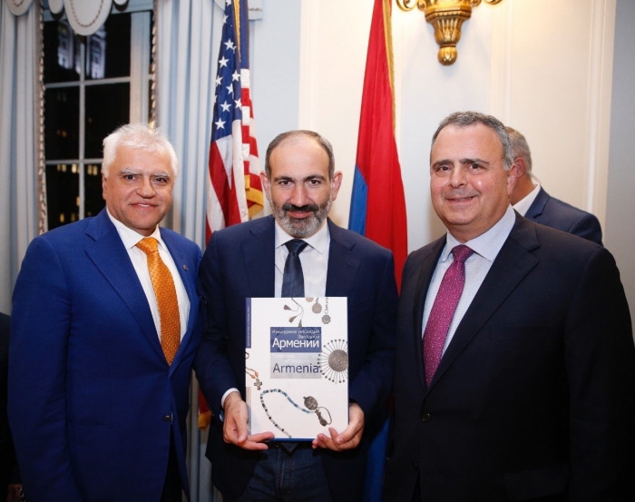Prime Minister Nikol Pashinyan, AJF patron Oscar Tatosian & Pierre Akkelian at NY Yale Club